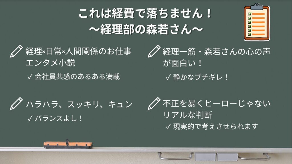 本作は、「経理×日常×人間関係」のリアルでちょっと笑えるお仕事エンタメ小説です。